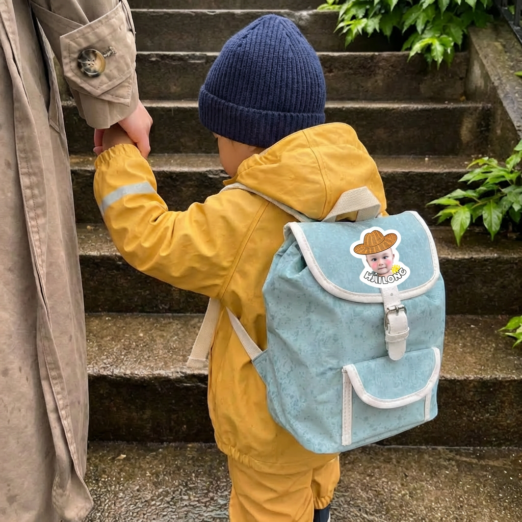 Bé 2-3 tuổi chưa đọc được chữ — nhưng nhận ra ảnh của mình. Chibi sticker mặt bé giúp bé tự tìm đồ mà không cần mẹ nhắc.